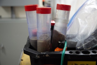 A trio of core samples–deep sea mud from as deep as 16,000 feet.