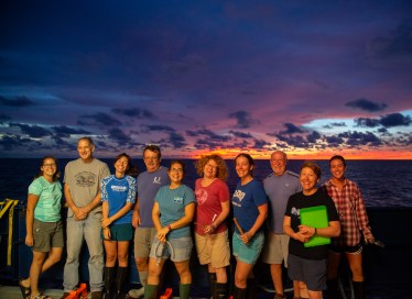 Previous ImageNext Image ctd last cast group plus All the scientists sampling gases from the seawater collected by the non-trace metal CTD rosette on leg two of GP15.