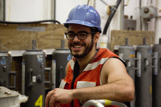 Vinicius Amaral of UCSC works with a smile in the sampling hangar.