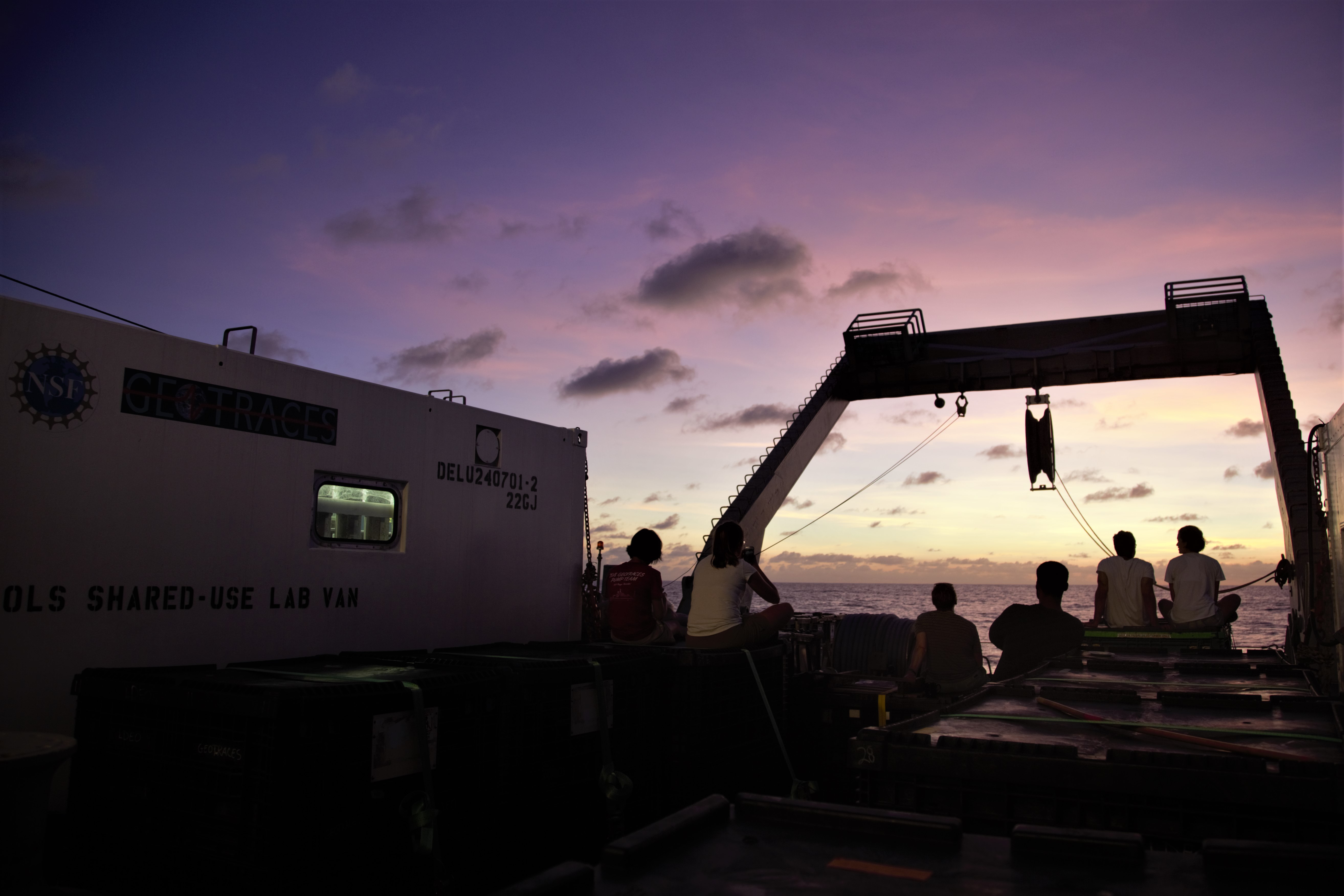 Previous ImageNext Image nsf geotraces sunset The GP15 team gathers on the back deck of the Roger Revelle to catch the sunset.